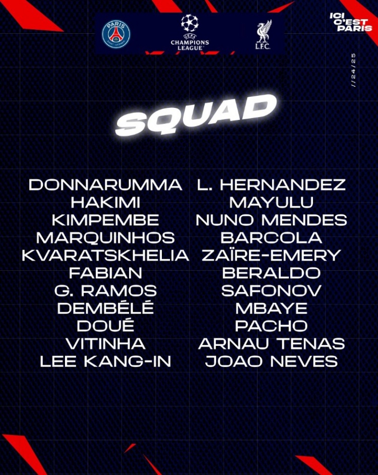 3月5日訊 北京時(shí)間3月6日凌晨4:00,歐冠1/8決賽首回合,巴黎圣日耳曼將坐鎮(zhèn)主場迎戰(zhàn)利物浦。賽前,巴黎官方公布了球隊(duì)大名單,登貝萊、克瓦拉茨赫利亞領(lǐng)銜鋒線,馬爾基尼奧斯坐鎮(zhèn)后防。門將:1-多納魯
