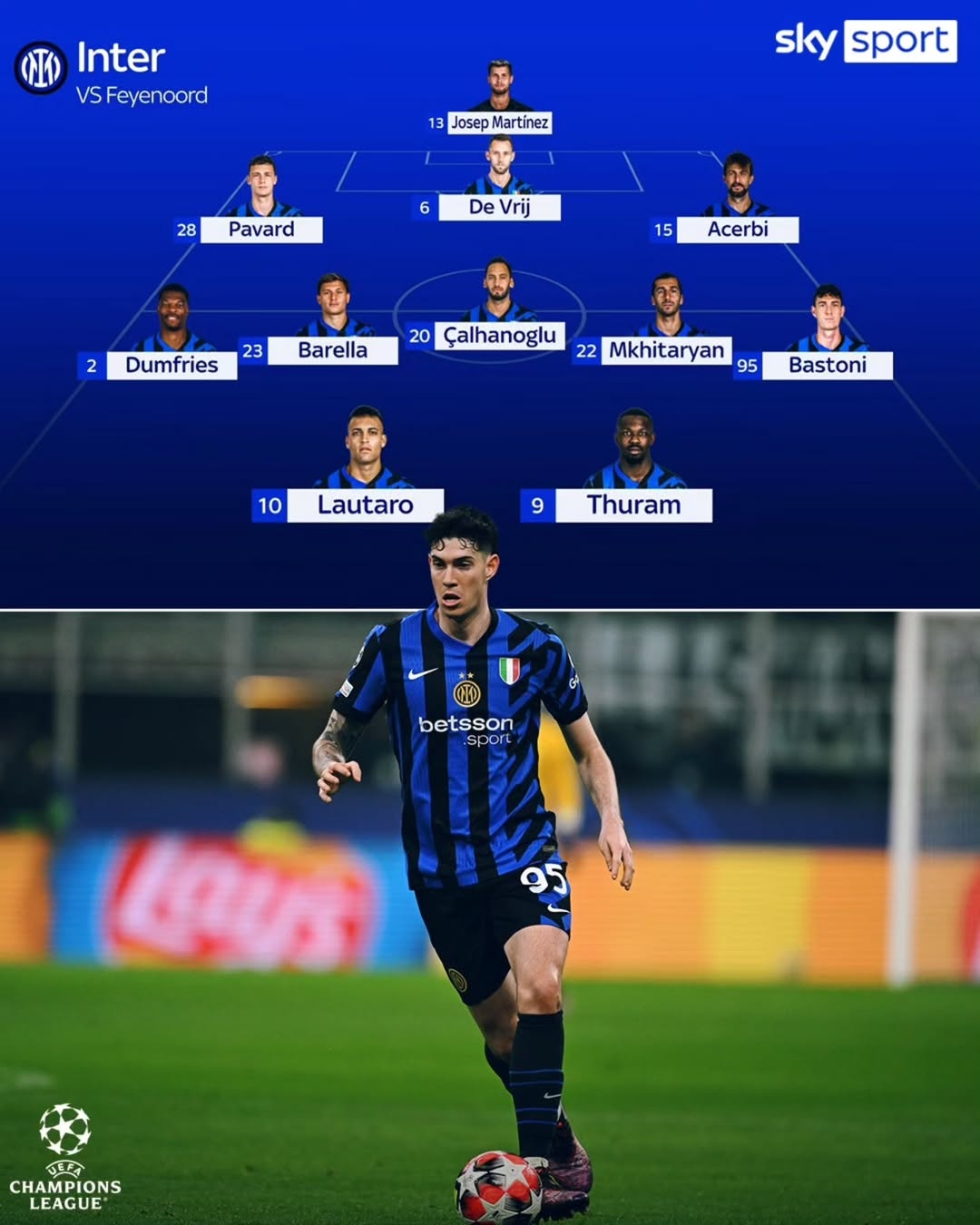 天空預測國米vs費耶諾德首發:帕瓦爾出戰,巴斯托尼頂替迪馬爾科