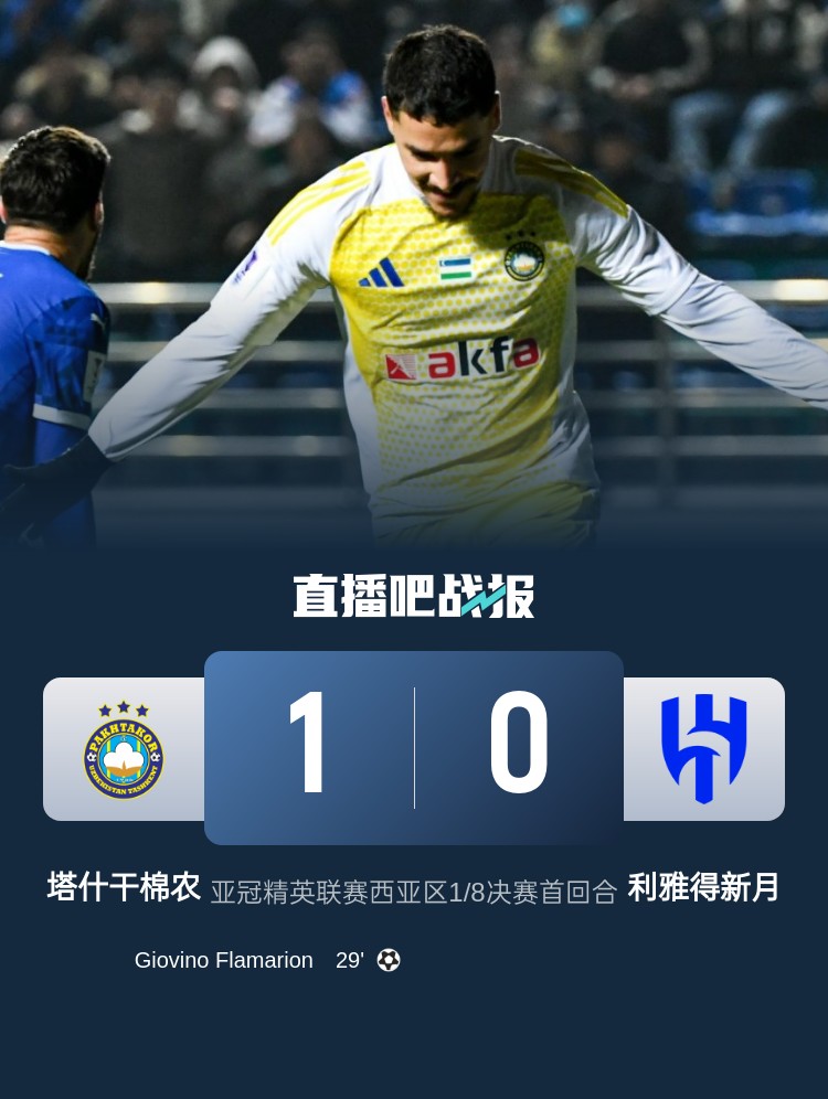 03月05日訊 亞冠精英聯賽西亞區1/8決賽首回合,利雅得新月0-1不敵塔什干棉農,客場告負。新月作為聯賽階段的巨無霸,8輪7勝1平未嘗敗績,狂轟26球僅丟7球。本場對陣西亞區以第8名的墊底戰績晉級的