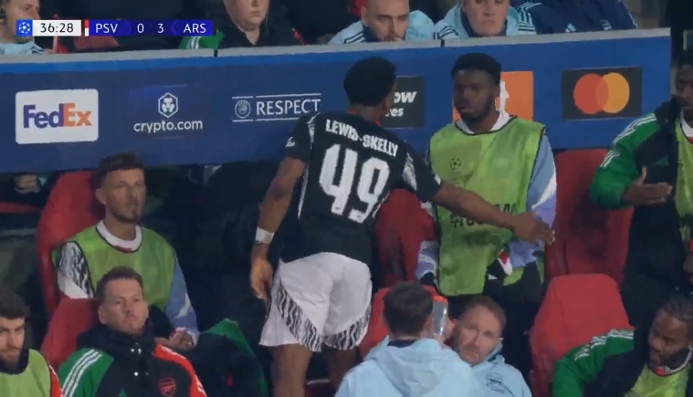 03月05日訊 歐冠1/8決賽首回合,埃因霍溫主場迎戰阿森納,比賽第35分鐘,阿森納換人調整,身背黃牌的斯凱利被卡拉菲奧里換下。