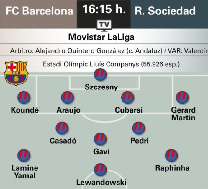 世體預(yù)測(cè)巴薩首發(fā):巴爾德輪休,馬丁、阿勞霍、卡薩多出戰(zhàn)
