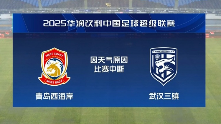 比賽延期!青島西海岸vs武漢三鎮(zhèn)進(jìn)行至18分鐘,因天氣中斷30分鐘
