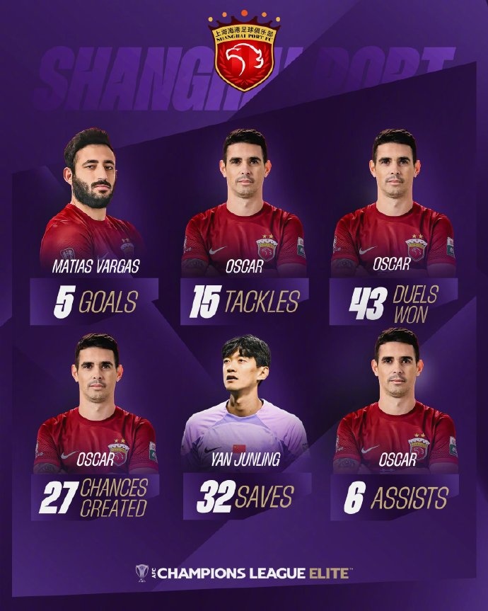 3月2日訊 今天亞冠聯賽官博曬出了海港球員在亞冠精英賽聯賽階段的數據海報,其中前隊長奧斯卡多項數據居首。海港亞冠精英賽聯賽階段主要球員數據如下:巴爾加斯 進球 5奧斯卡 搶斷 15奧斯卡 1V1獲勝次