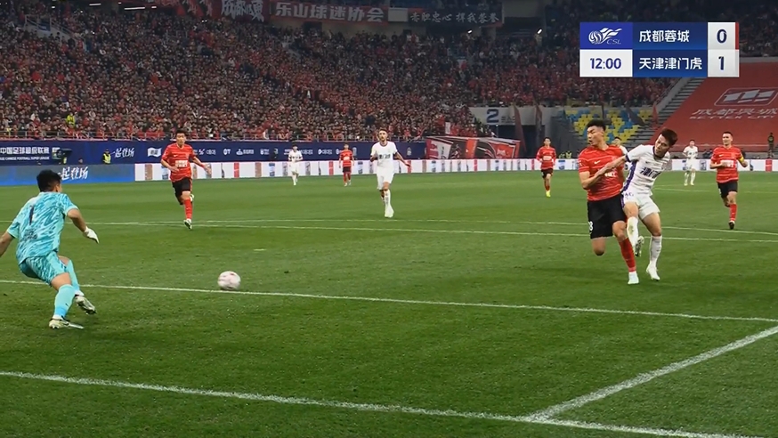 03月02日訊 中超第二輪,成都蓉城vs天津津門虎,第12分鐘,哈達斯邊路接后場長傳,隨后送出傳中,王秋明門前不停球搶點得手,蓉城0-1落后津門虎!傳球瞬間哈達斯并未越位