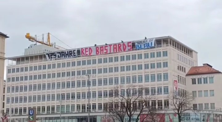 3月2日訊 據德國媒體munchner.gesindel的消息,慕尼黑1860球迷在一家商場掛橫幅嘲諷拜仁。最近拜仁正在慶祝俱樂部成立125周年。據德國媒體munchner.gesindel的消息,由