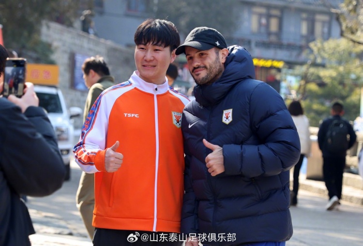 2月15日,山東泰山隊(duì)進(jìn)行賽季前例行登泰山合影活動(dòng),為新賽季加油。登山沿途中,熱情球迷與隊(duì)員們進(jìn)行簽名合影等互動(dòng)。臨近中午,全隊(duì)在摩崖石刻拍下了新賽季的全家福。
