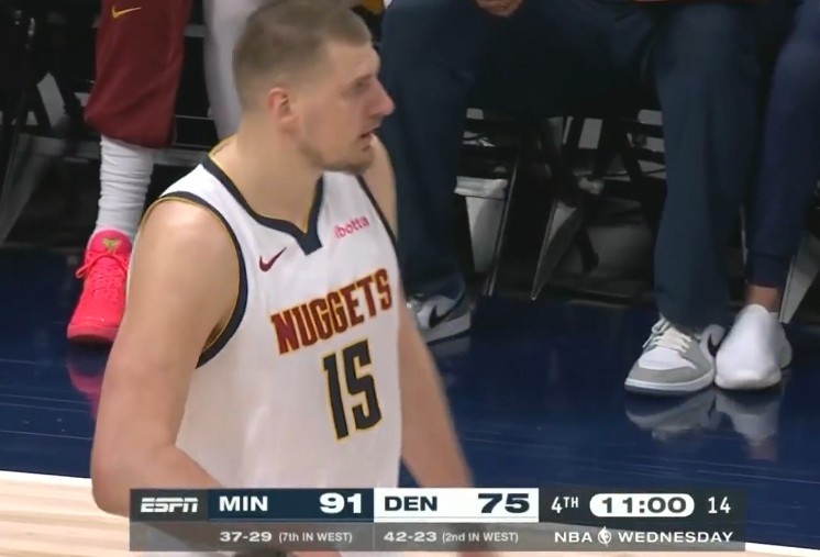 3月13日訊 NBA常規賽,掘金在主場以95-115不敵森林狼。此役,約基奇出戰38分16秒,投籃23中13,三分6中2,罰球8中6,得到34分8籃板4助攻1搶斷。