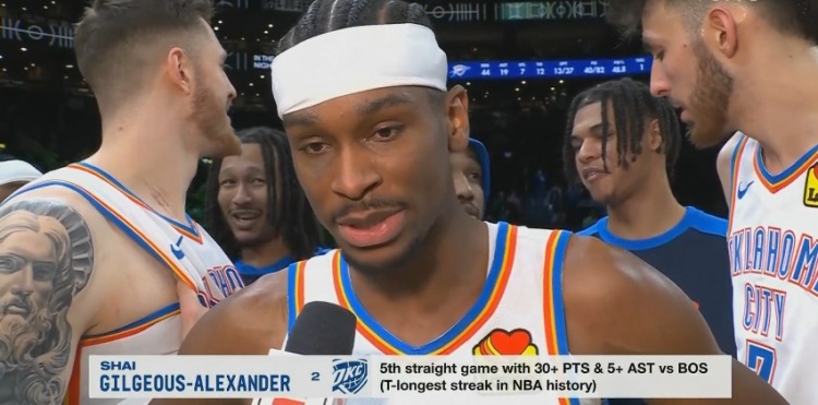亞歷山大對陣綠軍連續5場拿下至少30分5助攻 追平歷史紀錄!