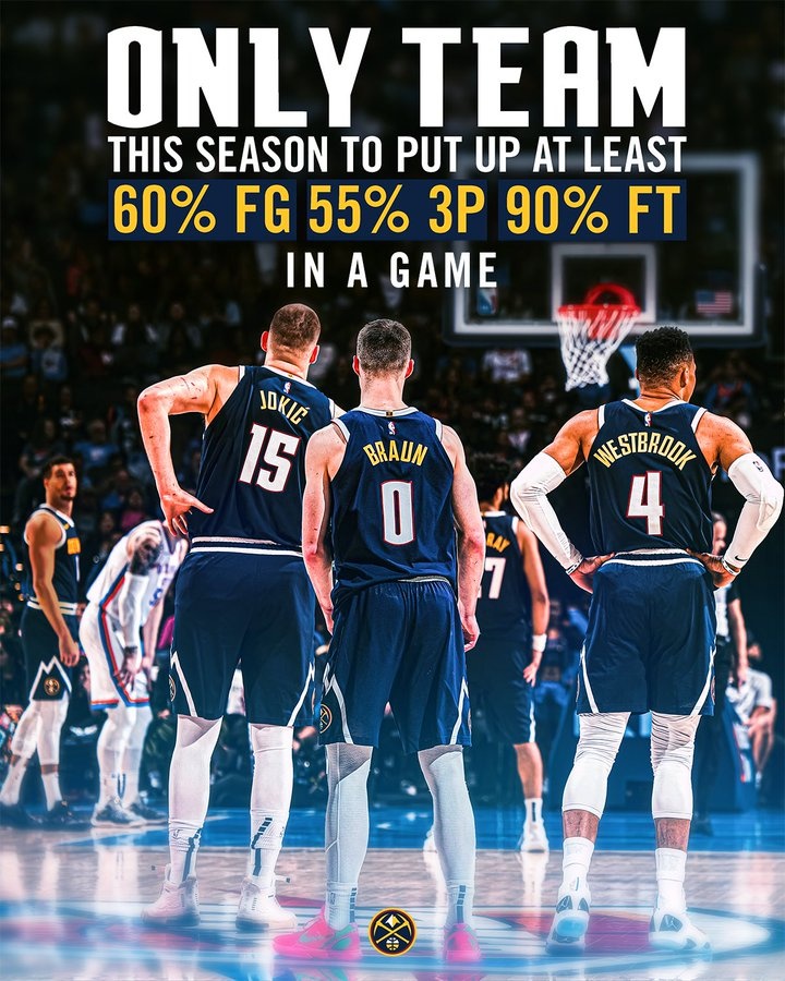 打的可是雷霆!掘金昨天打出60-55-90%的命中率 賽季首隊