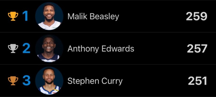 最終誰會第1?聯盟三分榜前3:比斯利259 華子257 庫里251