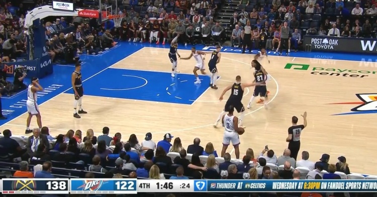 3月11日訊 NBA常規賽,掘金客場140-127擊敗雷霆,賽季戰成2-2平。本場比賽,約基奇投籃20中15,三分2中1,罰球5中4,砍下35分18籃板8助攻1搶斷1蓋帽;亞歷山大投籃14中8,三分球