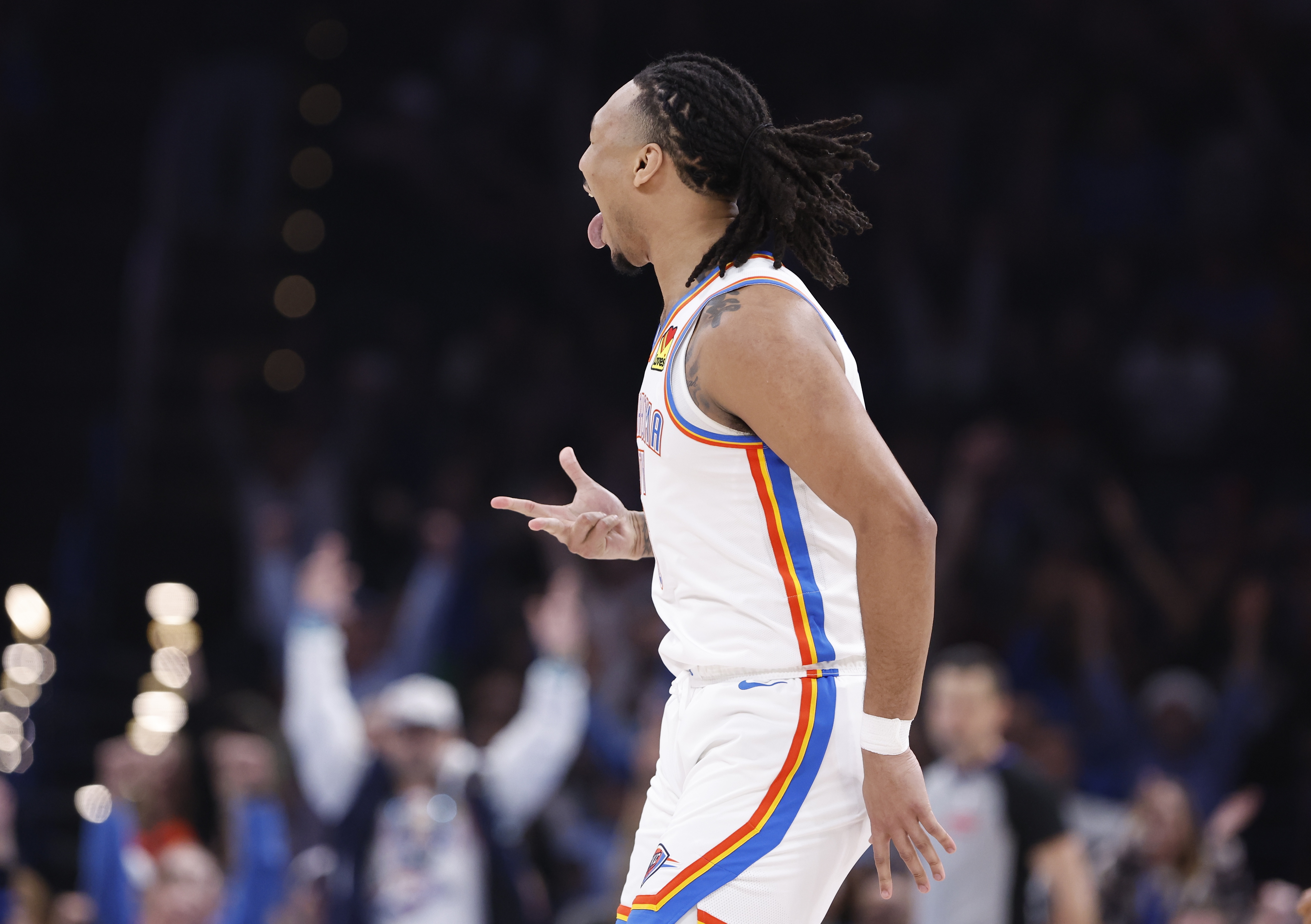 3月8日訊 NBA常規賽,雷霆107-89輕取開拓者。此役,杰林-威廉姆斯出場35分56秒,7投4中(三分4中2),拿到10分11籃板11助攻3搶斷2蓋帽,正負值+35冠絕全場。杰林-威廉姆斯也成為雷