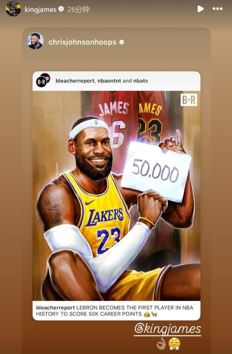 3月5日訊 湖人今日主場136-115大勝鵜鶘,豪取7連勝。在本場比賽中,詹姆斯生涯總得分突破50000大關;賽后,他轉發了眾多給自己送祝福的動態。此役,詹姆斯出戰33分鐘,18投10中,三分10中5