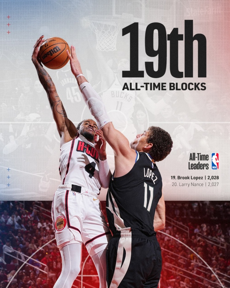 3月6日訊 今日雄鹿主場迎戰獨行俠,雄鹿中鋒大洛佩斯出戰10分42秒送出1記蓋帽。這樣一來,大洛佩斯生涯蓋帽數達到2028個,超越拉里-南斯(2027個)獨占歷史第19位,下一步將追逐加內特(2037