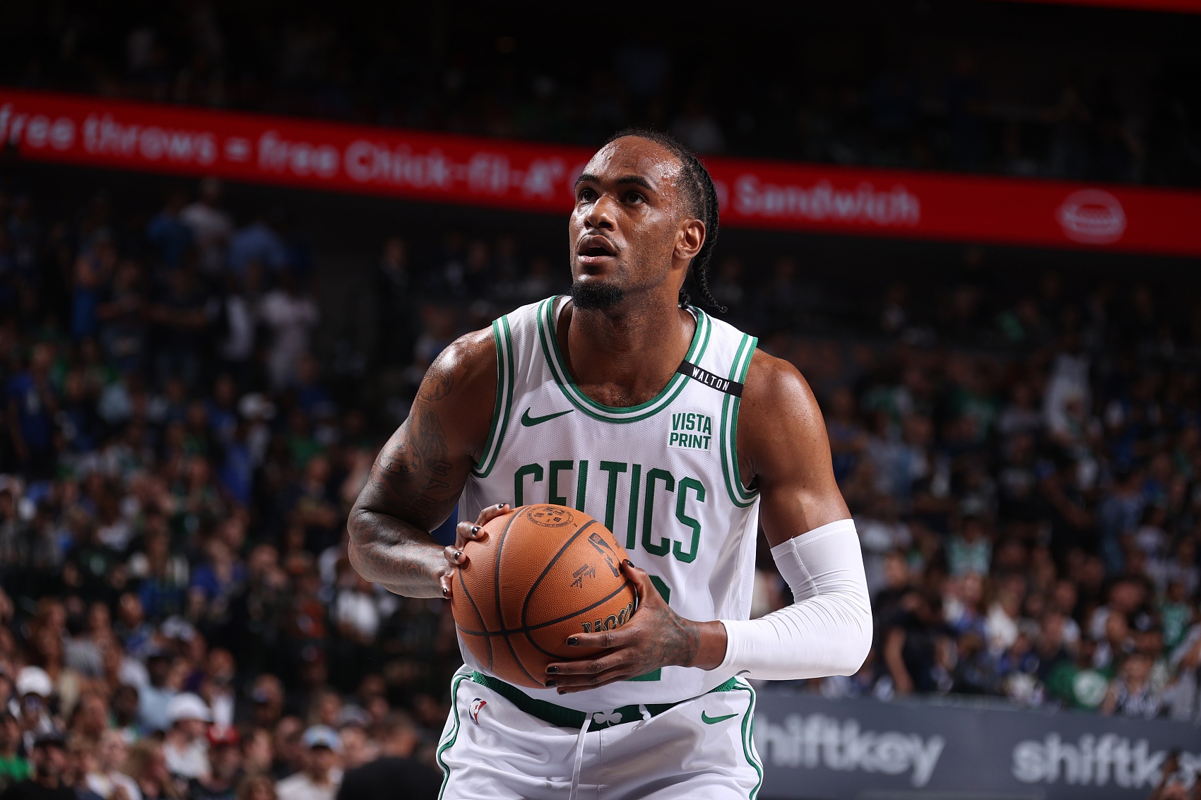布里塞特上賽季效力于凱爾特人,出戰(zhàn)55場(chǎng)常規(guī)賽,場(chǎng)均上陣11.5分鐘,得到3.7分2.9籃板。