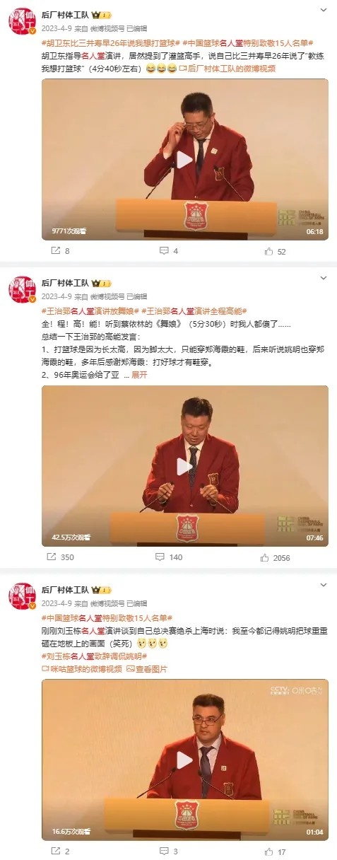 兩年前中國籃球名人堂第一次辦入堂儀式時(shí),我還在老東家為后廠村體工隊(duì)玩命,那會(huì)我一邊錄屏搶時(shí)間搶話題,一邊隔著屏幕感受著那種“新的文化爭在建立”帶來的輕松氣氛: