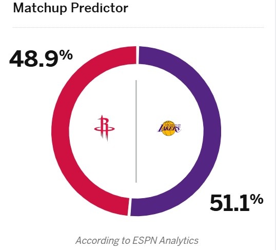 火湖大戰!ESPN預測明天勝率:湖人51.1%略占優勢 火箭48.9%