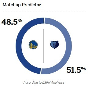 關鍵卡位戰!ESPN預測明日勇士獲勝概率為48.5% 灰熊51.5%