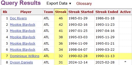 而連續32場搶斷在老鷹隊史上能排到并列第7,排名第一的是現雄鹿主帥道格-里弗斯的46次!