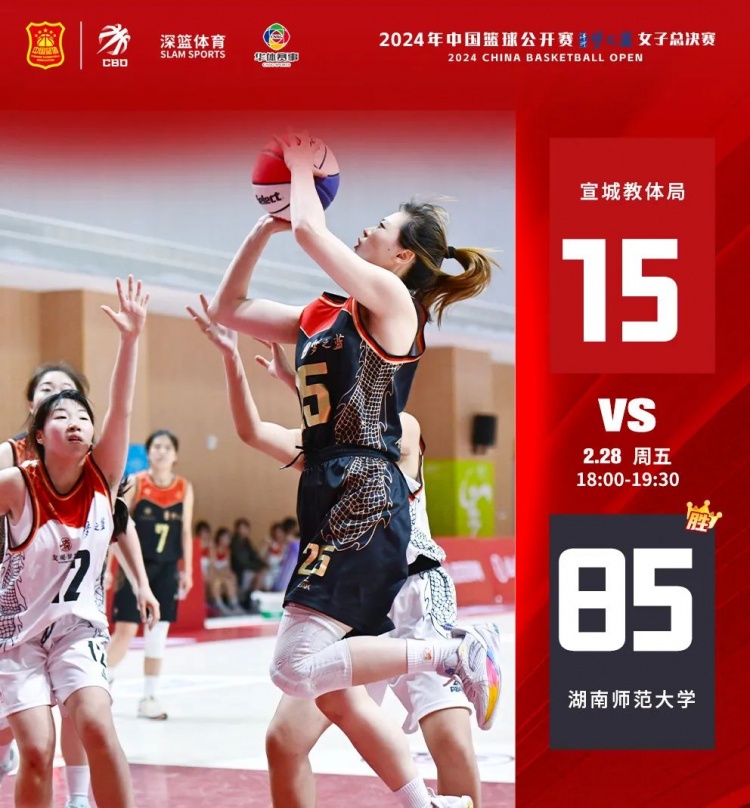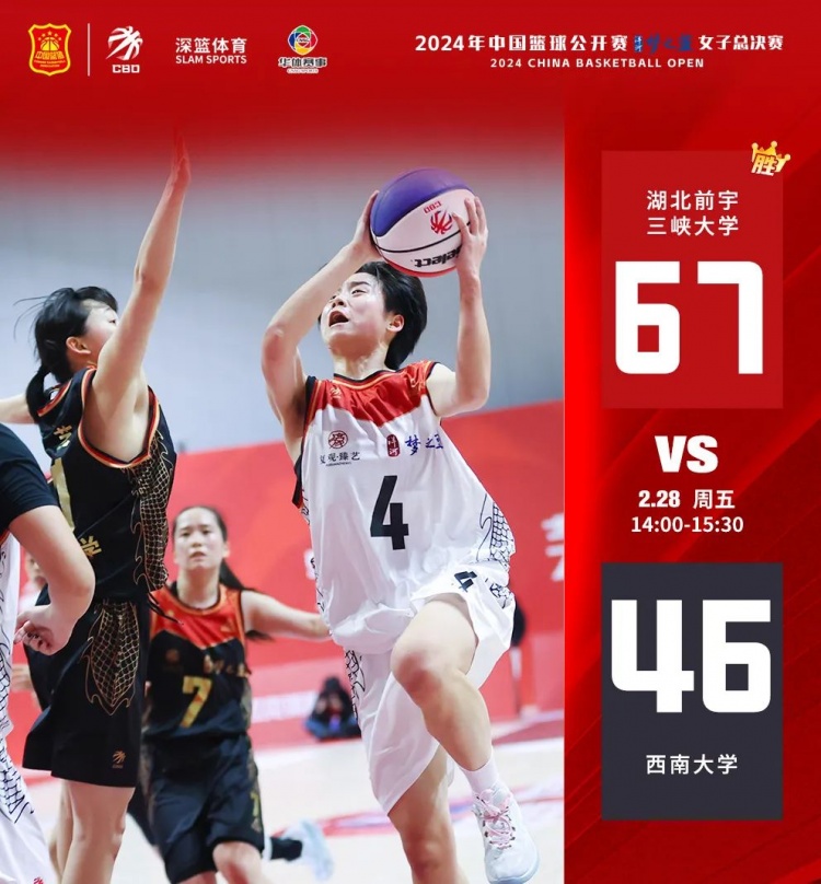 2月28日,2024年中國籃球公開賽洋河夢之藍女子總決賽進入到第四個比賽日。在本輪中,湖北前宇三峽大學、云南隊、湖南師范大學獲勝。