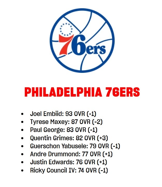 3月7日訊 NBA2K官方更新了各隊(duì)球員的能力值,76人球員變化情況如下: