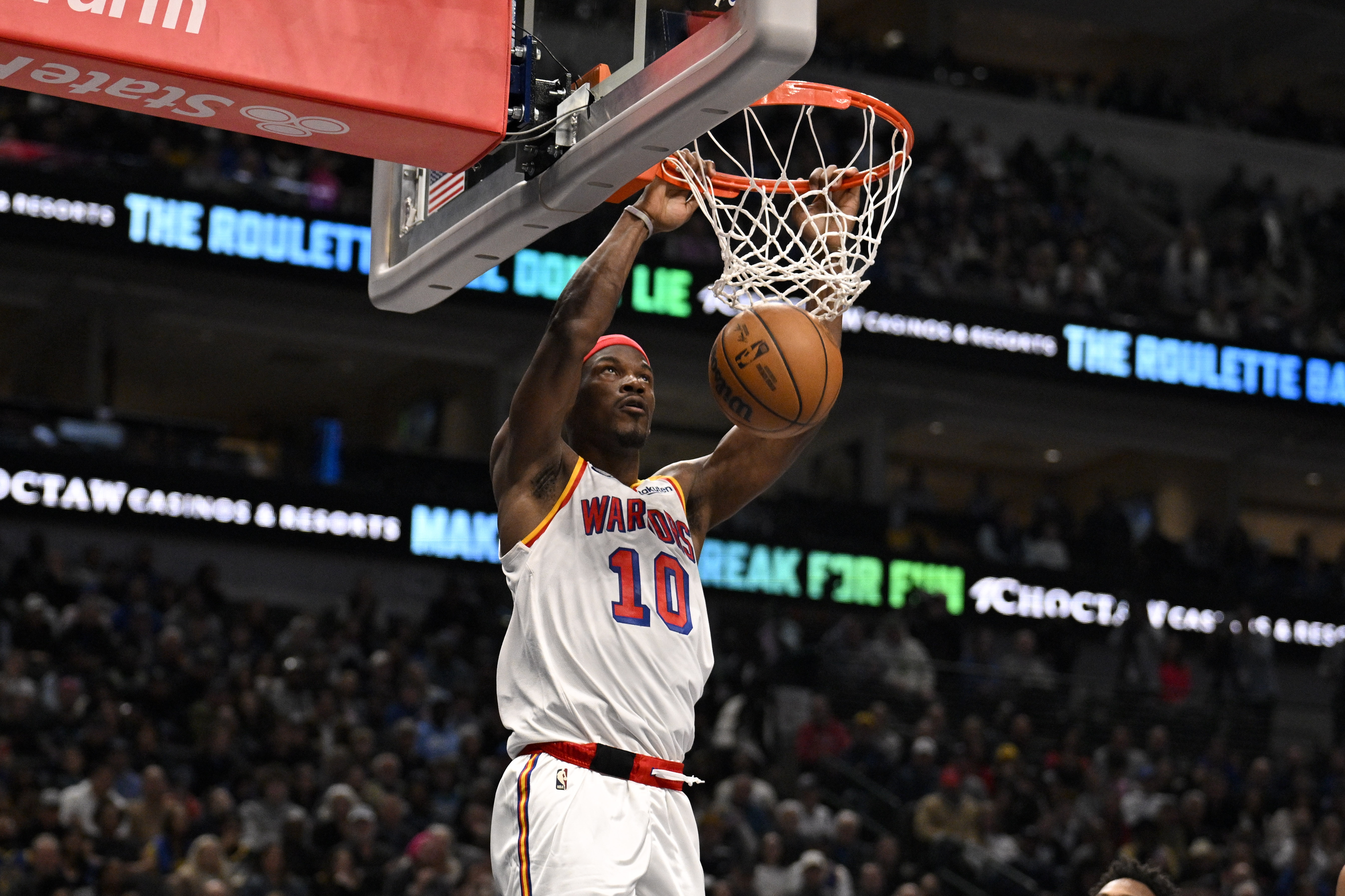 巴特勒并沒有用超級巨星的表現壓倒對手,在勇士隊他場均可以得到還算不錯的16.3分、5.3個籃板、5.3次助攻和1.1次搶斷,上場時間為30.6分鐘。(我說“還算不錯”是因為本賽季只有13名其他球員達到這些數據,除了德斯蒙德-貝恩,其他人都至少入選過一次全明星。)巴特勒在投籃方面的表現很掙扎——自從交易以來,他20次三分球出手投丟了18個,在油漆區的投籃命中率僅為53.3%,低于本賽季早些時候在邁阿密熱火隊時的61.2%——而且在過去的幾場比賽中有所下滑,部分原因是背部痙攣,部分原因是整體進攻停滯。