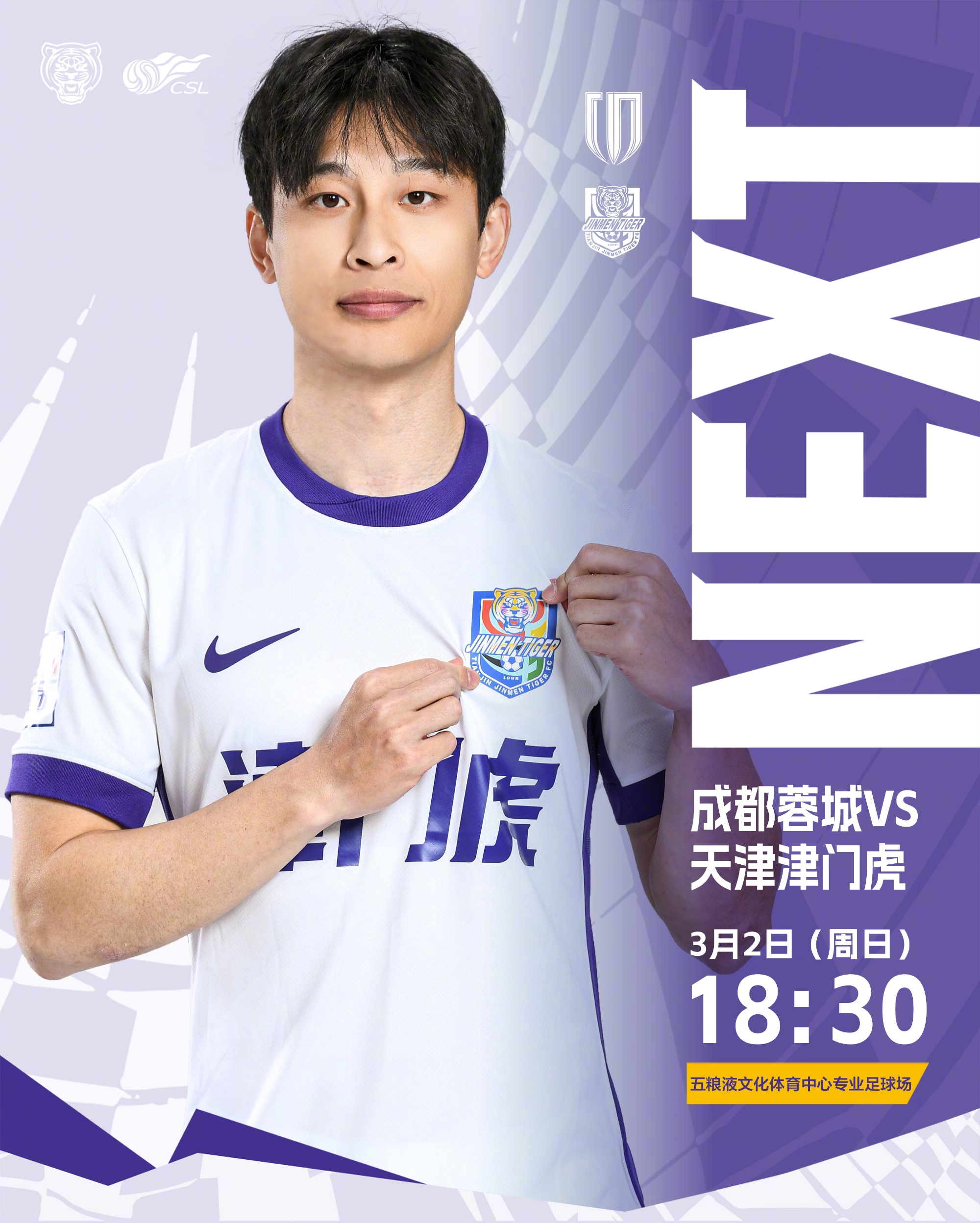 03月02日訊 北京時間今天18點30,中超第二輪,成都蓉城坐鎮主場對陣天津津門虎,賽前首發陣容公布。
