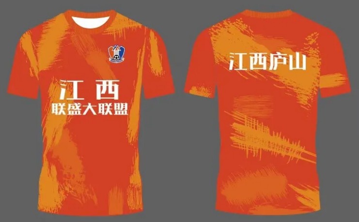 主場戰袍延續了江西廬山隊經典的橙色主色調,象征著激情、活力與勝利。球衣正面采用漸變設計,猶如長江之水奔流不息,寓意著江西足球生生不息,勇往直前。球衣背面印有“九江瑞昌”字樣,彰顯著球隊為江西、為九江、為瑞昌榮譽而戰的決心。