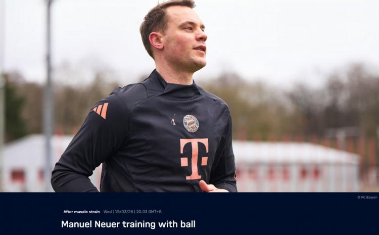 3月19日訊 拜仁官方確認,諾伊爾今天恢復了有球訓練。
