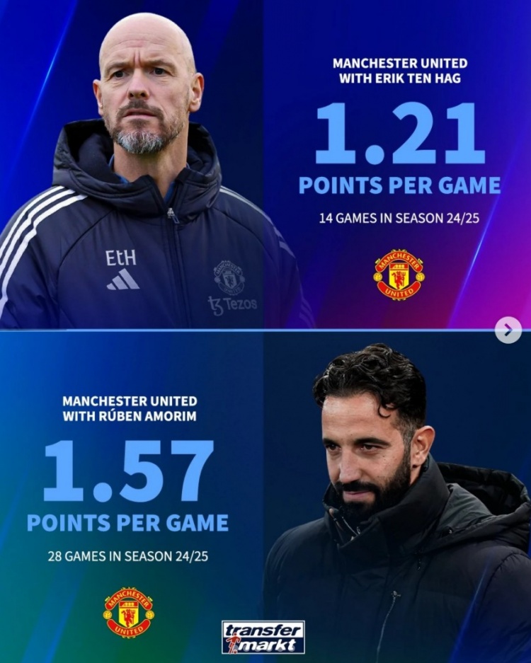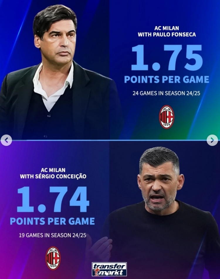 本賽季中途換帥6支球隊場均積分變化:曼聯提升0.36分,米蘭下降?