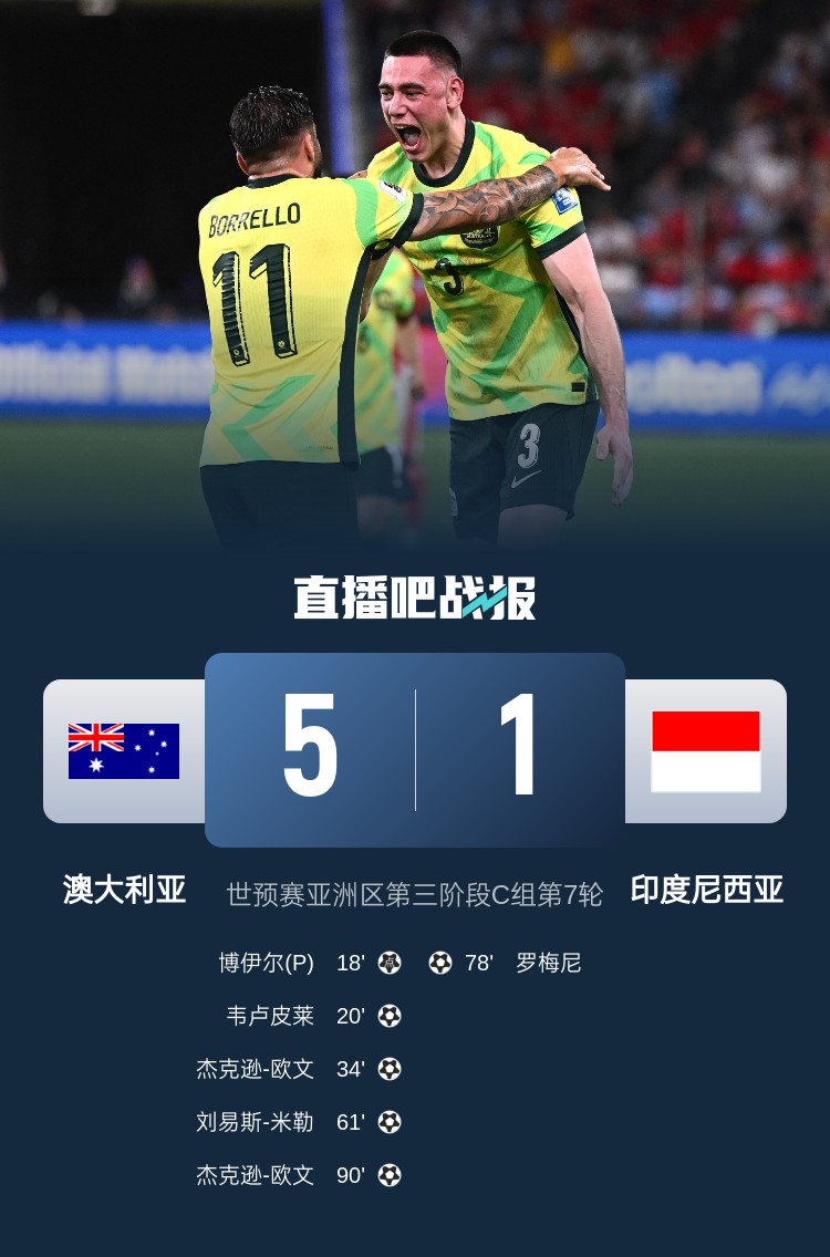 3月20日訊 世預賽亞洲區第三階段C組第7輪,10名歸化球員首發的印尼隊1-5慘敗澳大利亞隊。
