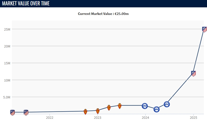 03月21日訊 今日德轉(zhuǎn)更新西甲球員身價,馬競主帥西蒙尼的三兒子朱利亞諾-西蒙尼身價上漲1300萬歐,從原先的1200萬漲至2500萬歐元。