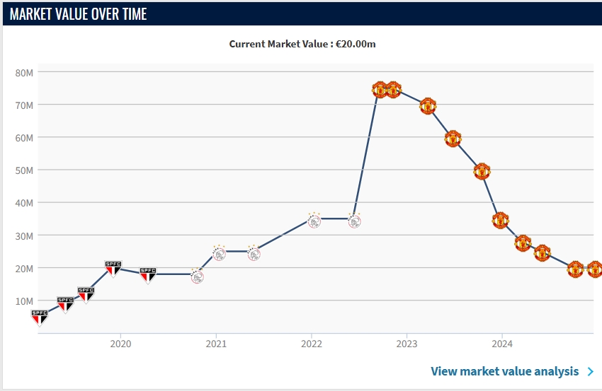 本賽季25歲的安東尼自曼聯租借至皇家貝蒂斯后狀態火熱,為皇家貝蒂斯出場11場已打入4球,并有4次助攻,且多為關鍵進球,幫助皇家貝蒂斯近期斬獲西甲五連勝。可他的身價卻與去年12月份相同,仍為2000萬歐元。