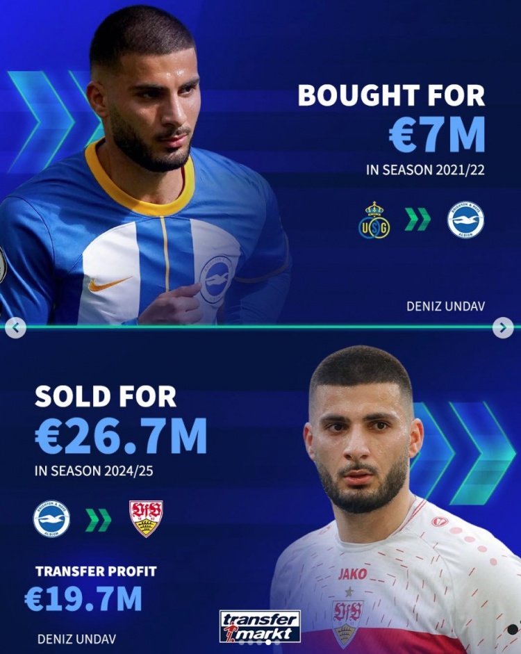 3月3日訊 《轉(zhuǎn)會市場》統(tǒng)計了布萊頓近年的5筆低買高賣轉(zhuǎn)會操作,共計凈賺超過2億歐元。