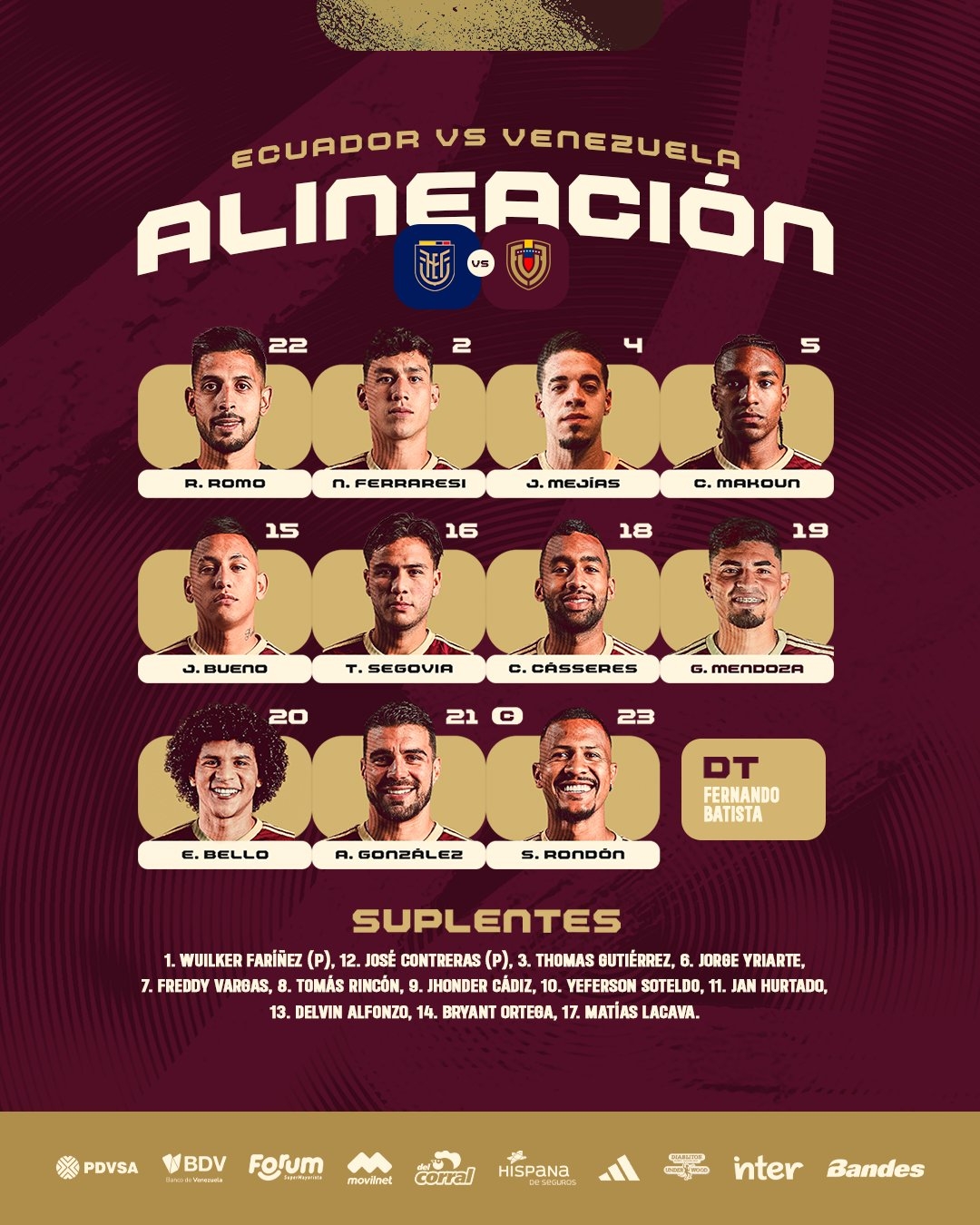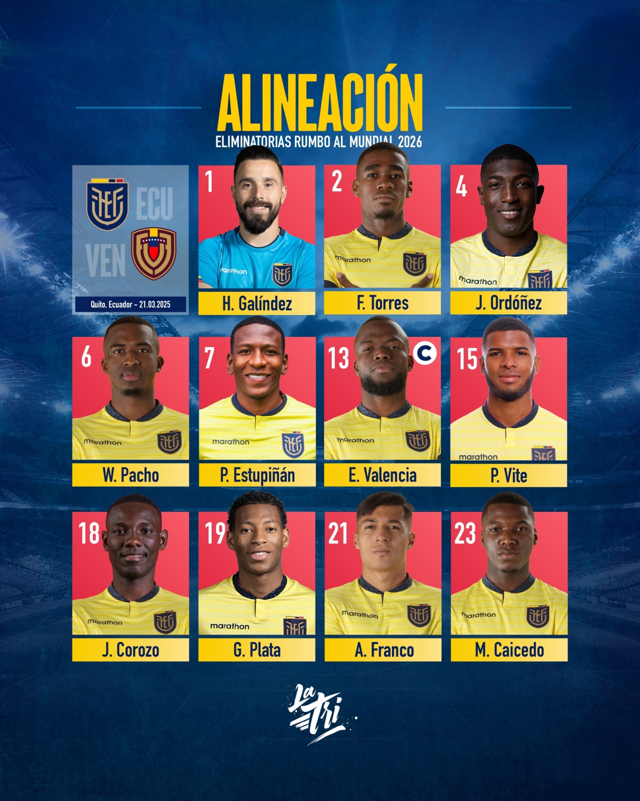 厄瓜多爾首發:1-加林德斯、2-F-托雷斯、4-奧多涅茲、6-帕喬、7-埃斯圖皮尼安、15-佩德羅-維特、23-凱塞多、19-普拉塔、21-A-弗蘭科、18-科羅佐、13-瓦倫西亞