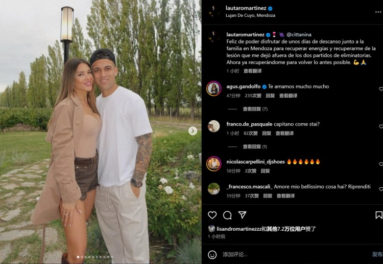 勞塔羅曬出和家人度假的照片,并寫道:我很開心能夠和家人在門多薩休息幾天,從而補充能量。我因傷缺席了兩場世界杯預選賽,希望能從傷病中恢復過來。 現在我正在康復當中,以便盡快復出。