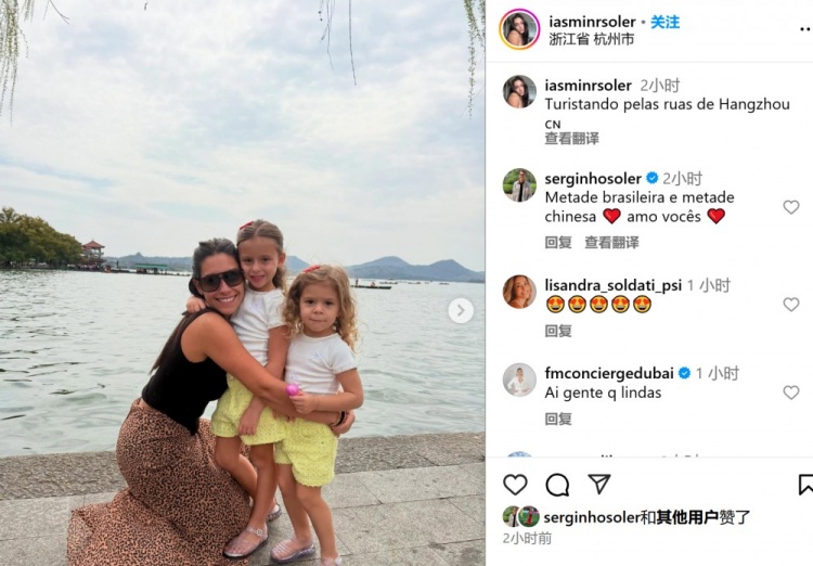 妻子帶女兒逛杭州!塞爾吉尼奧評論:一半巴西人,一半中國人?