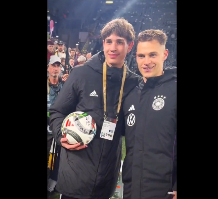 值得一提的是,現(xiàn)場(chǎng)的德國球童第一時(shí)間將足球拋給基米希,在很大程度上幫助實(shí)現(xiàn)了這一進(jìn)球。基米希也在賽后找到這位球童,為其送上簽名足球并合影鼓勵(lì)。