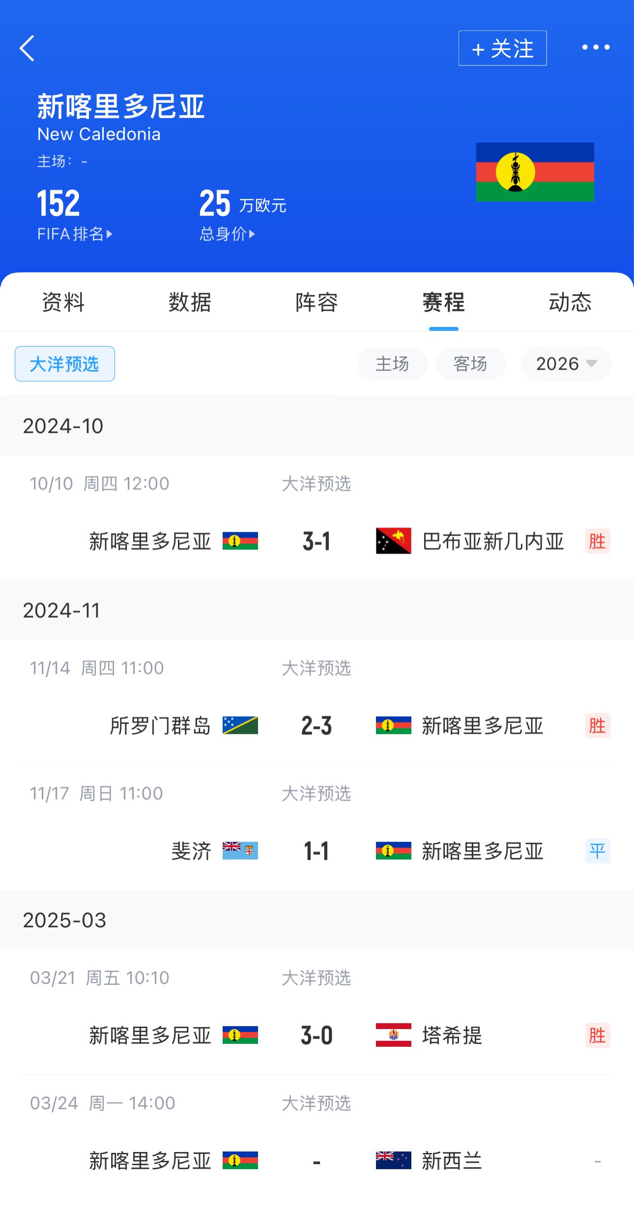 03月24日訊 今天14:00,大洋預選決賽開打,新喀里多尼亞對陣新西蘭,勝者將拿到大洋洲的直通名額,直接晉級2026世界杯。