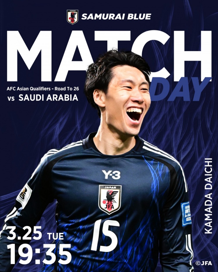 日本隊官推曬今晚戰沙特海報,水晶宮中場鐮田大地入鏡?