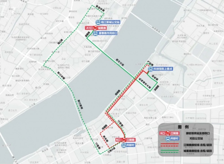 2.公交接駁:在飛虹路科技館街交叉口設(shè)置2條公交接駁專線將觀眾分別送至地鐵1號(hào)線江陵路站、地鐵4號(hào)線城星路站。