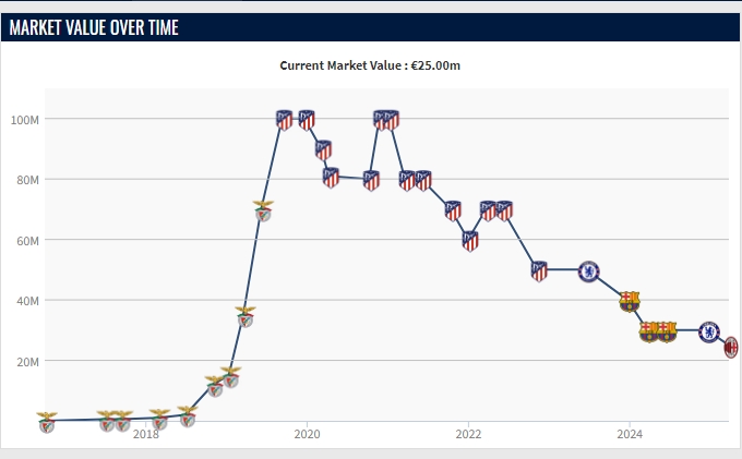巔峰1億歐!25歲菲利克斯在米蘭10場1球,最新身價跌至2500萬歐