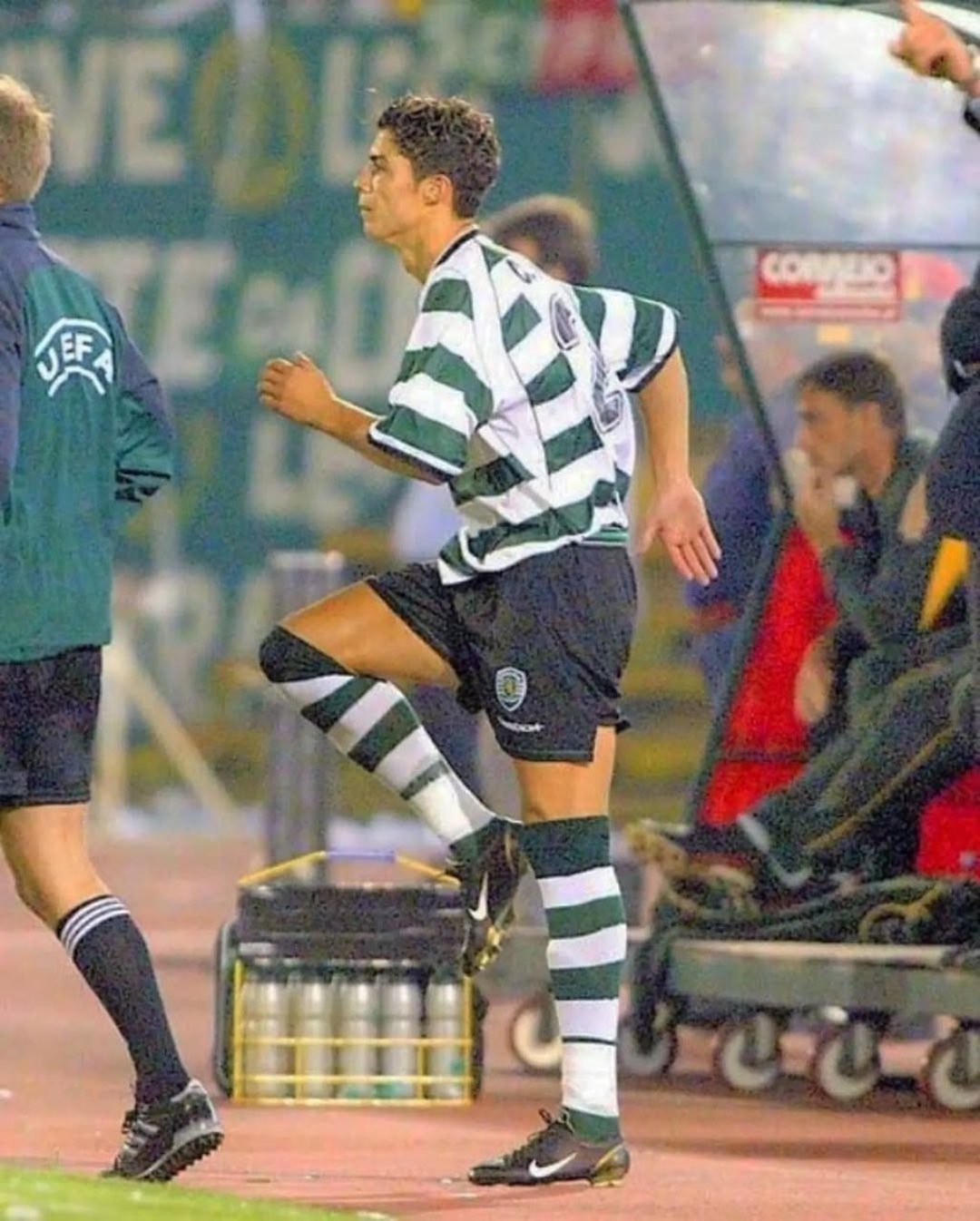 2002年8月14日,C羅代表葡萄牙體育在歐冠資格賽中登場,上演了職業生涯首秀,當時他穿著的就是刺客一代“Dark Cinder”。