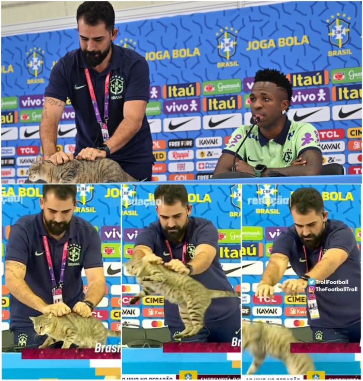 這是2022年12月8日,維尼修斯參加新聞發布會,一只貓貓被新聞官無情扔走~自此巴西一蹶不振……