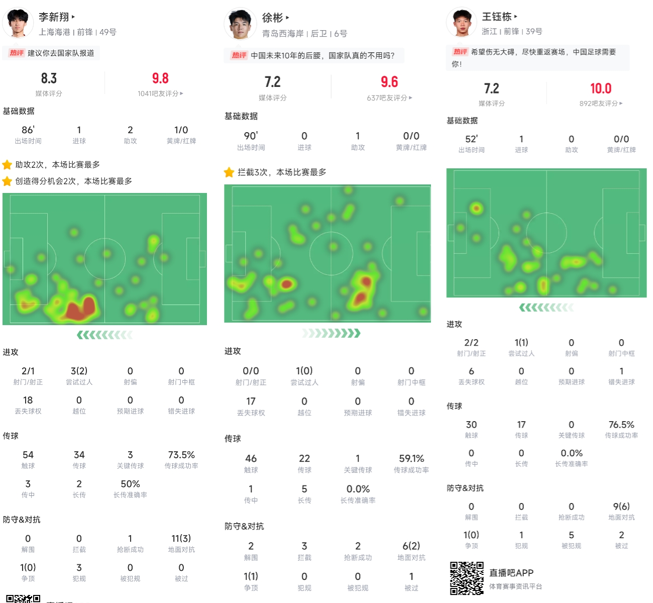 上海海港客場(chǎng)3-3戰(zhàn)平青島西海岸的比賽,19歲的海港小將李新翔首發(fā)迎來(lái)中超首秀,全場(chǎng)比賽1射2傳發(fā)揮亮眼,幫助海港搶下一分。青島西海岸方面,20歲的后腰徐彬也表現(xiàn)出色,為阿齊茲送出一次助攻。