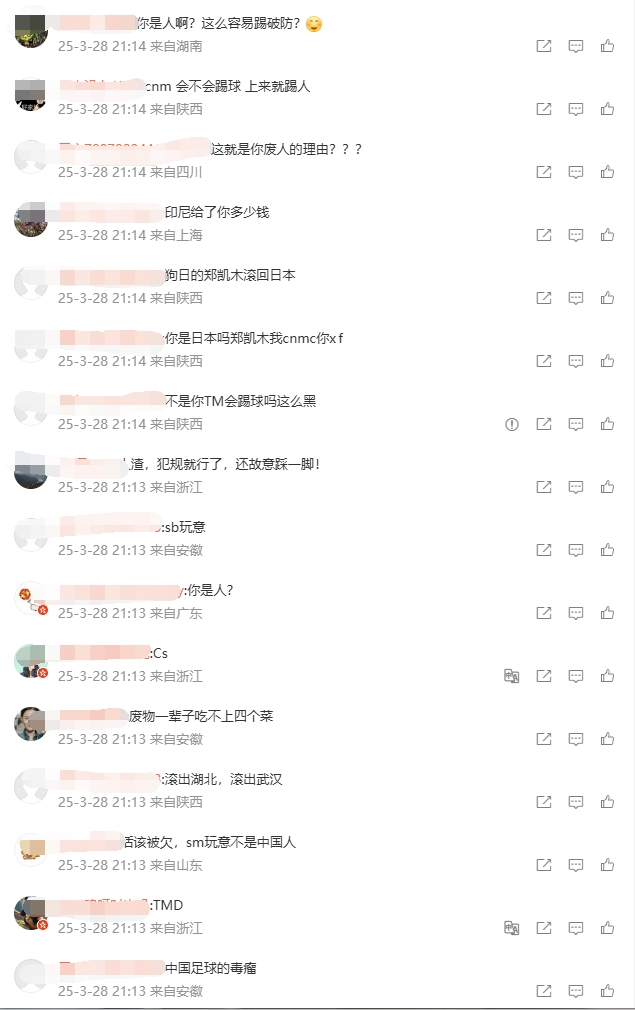 踢傷王鈺棟,鄭凱木微博被沖數百條:毒瘤、印尼給你多少錢?