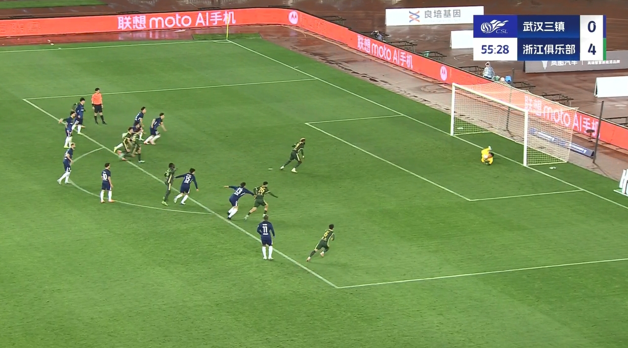 任航送點,布彭扎點球被撲,錯失帽子戲法,浙江4-0領先三鎮