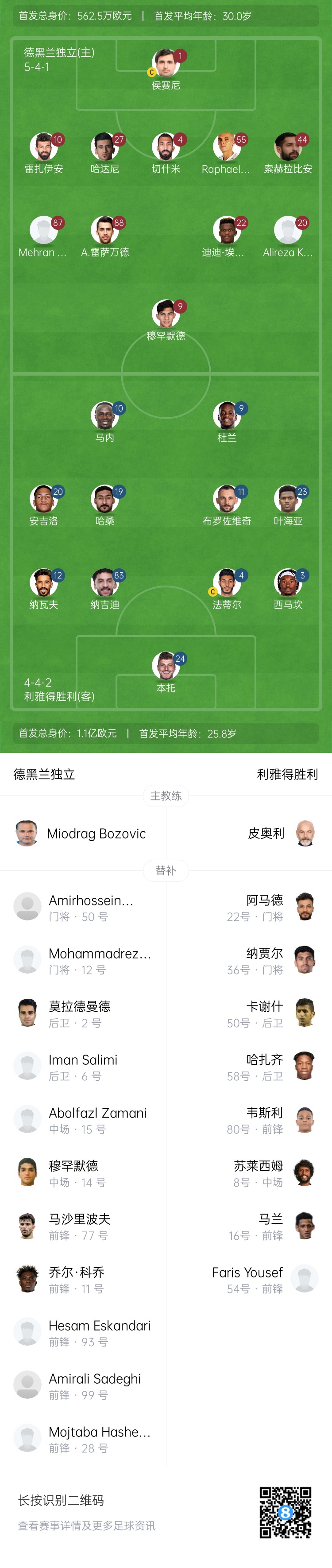 利雅得勝利首發:24-本托、3-西馬坎、4-法蒂爾、12-納瓦夫、83-納吉迪、19-哈桑、11-布羅佐維奇、23-葉海亞、20-安吉洛、10-馬內、9-杜蘭