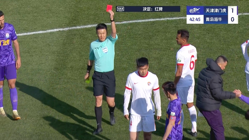 海牛少打一人!金洋洋側面飛鏟哈達斯,VAR改判直紅將其罰下!