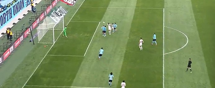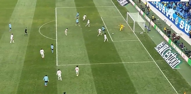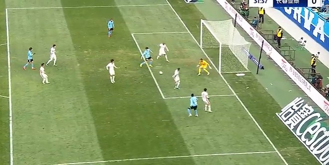 第14分鐘,亞泰左路玄智健下底傳到禁區徐越門前頭球頂偏了。↓
